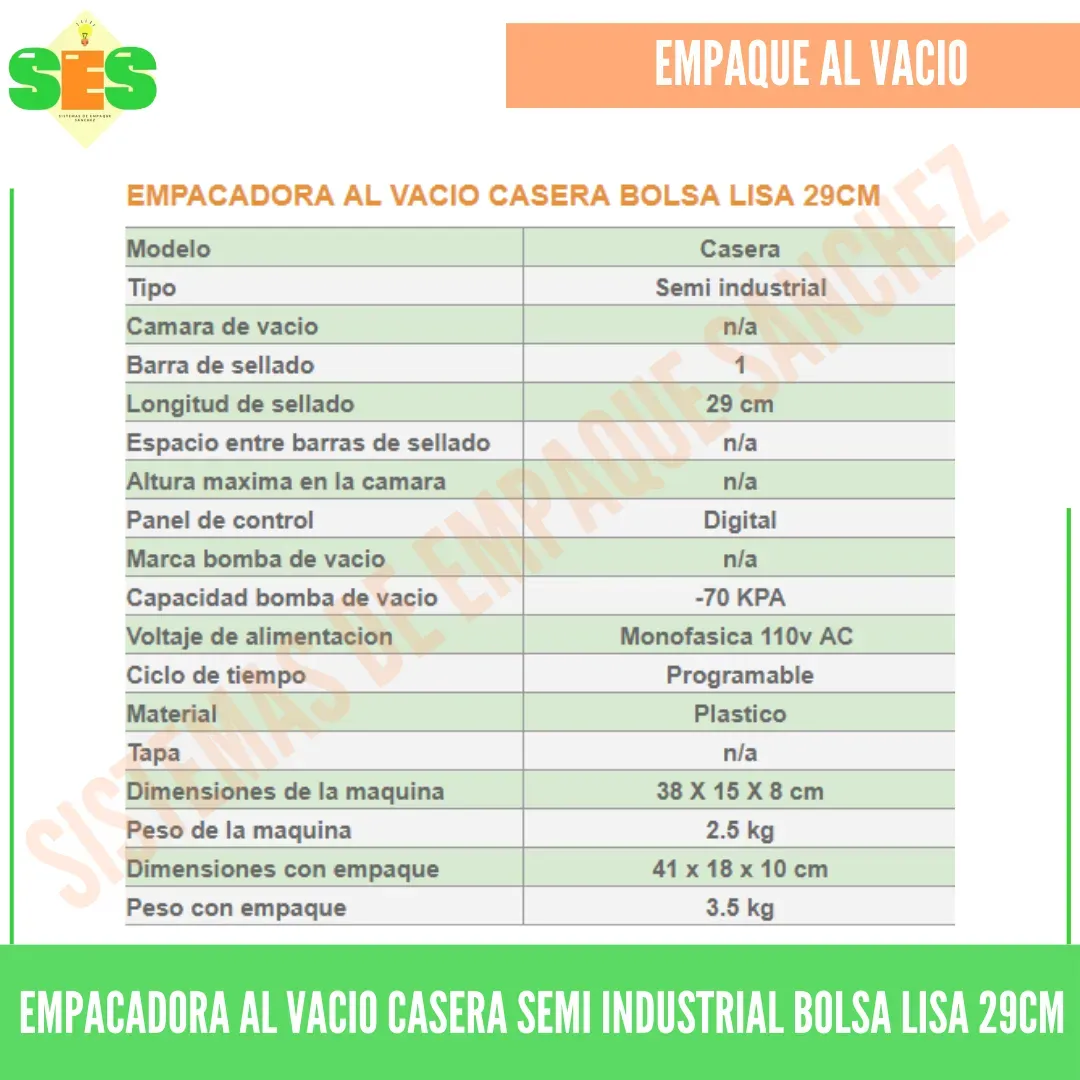 Empacadora al vacio Casera Bolsa lisa 29cm